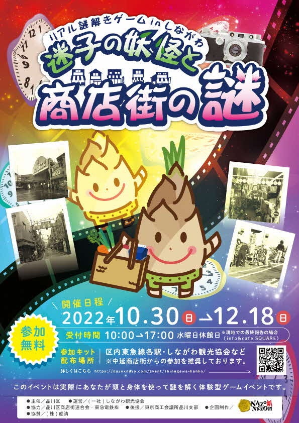 品川区は10月30日(日)~12月18日(日)、品川区の商店街で「リアル謎解きゲームinしながわ」を開催します。参加者は区内東急線各駅などで配布する謎解き冊子を使い、実際に各商店街を歩き、解いた謎とアンケートを回答すると、賞品(屋形船の乗船券・しながわ土産の詰め合わせなど)が当たる抽選に参加できます。参加費無料。みなさん、ふるってご参加ください。