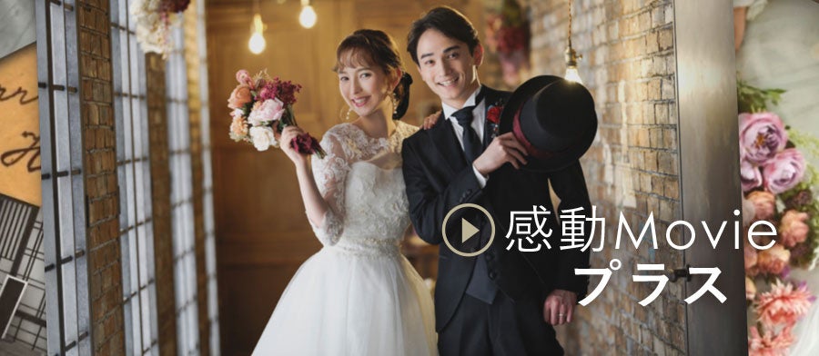 「感動ムービープラス」とは、当日撮影した写真に撮影中の様子をおさめたモノクロ写真やメイキング動画を加え、 音楽付きのオリジナル動画に仕上げます。従来の記念写真を撮影するフォトグラファーの他に、動画やファッション性の高い写真を撮影する2人目のフォトグラファーも導入し、他にはない新しい記念撮影を楽しむことができます。