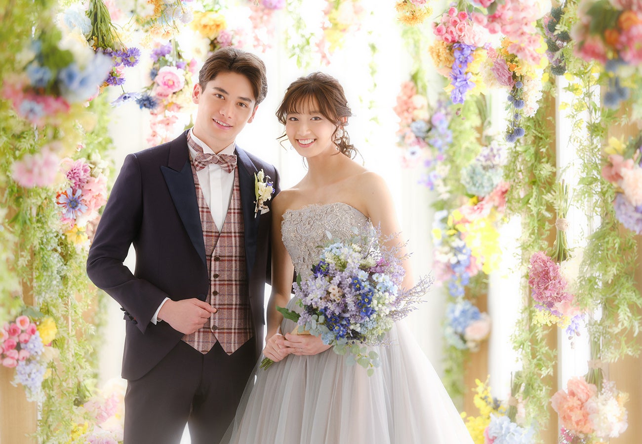 ロマンティックな演出で定評がある、らかんスタジオのウェディングフォト。春シーズンは、パステルカラーの花々や鮮やかなグリーンに囲まれたセットに、柔らかい日差しを感じさせるライティング、オリジナルのブーケや撮影小物で、春の世界観あふれるウェディングフォトを撮影することが可能です。自然光の差し込むスタジオや、石畳のフラワーガーデンをコンセプトにしたセットなど、スタジオによって色々な春のウェディングフォトを叶えます。