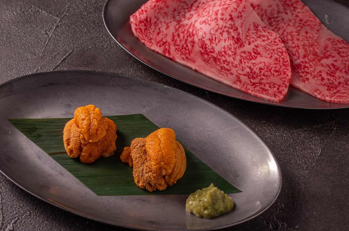 また、今年限定の特別コース『MARUUSHI 焼肉コース特上』は、『MARUUSHI 焼肉コース特選』に加え、キャビアやトリュフ、雲丹などが追加でお楽しみいただけるコース。黒毛和牛と高級食材のコラボレーションをお楽しみいただけます。
