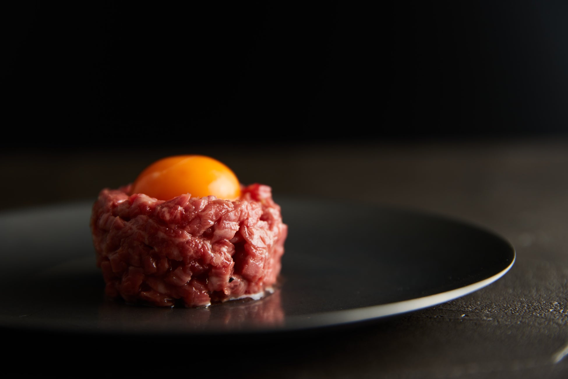 【前菜】黒毛和牛熟成醤油ユッケキャビア1⽸添え