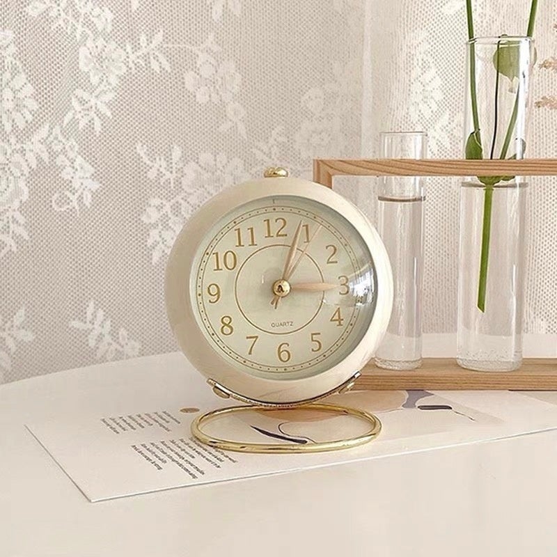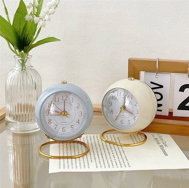 ころんと丸いシルエットが可愛い、大人なデザインの目覚まし時計です。