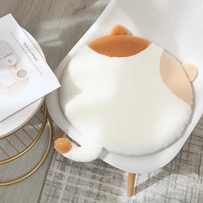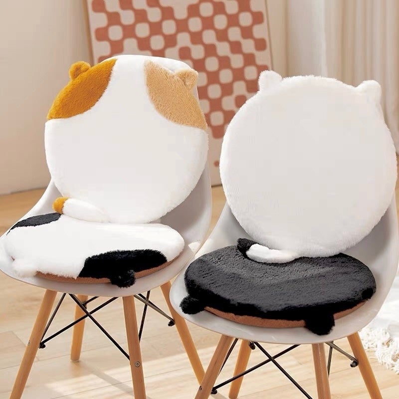 まるで本物の猫ちゃんがそこにいるかのような、愛らしい円形座布団です。