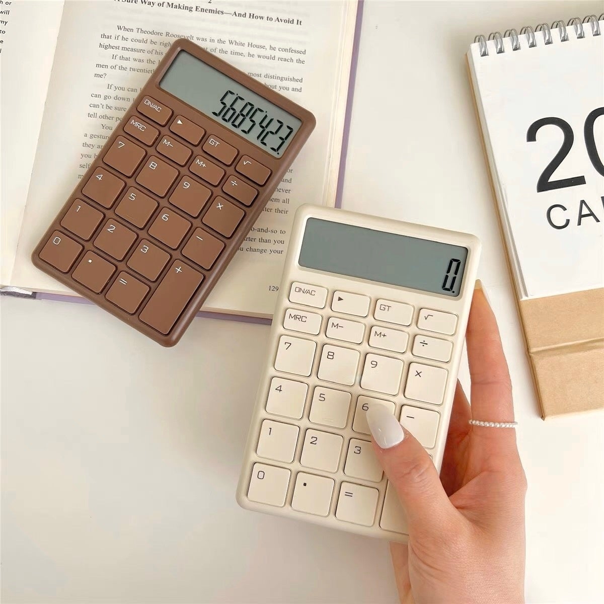 板チョコ風のデザインが可愛い!ミルクチョコとホワイトチョコのカラーから選べる電卓