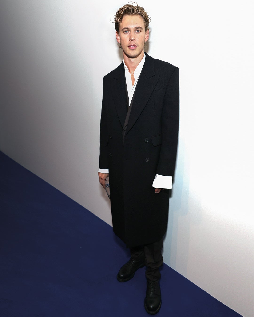 10月1日、ロンドンで開催された映画「Elvis」の成功を祝うRuthie Rogersが主催するディナーにて、オースティン・バトラーが2022年秋冬コレクションより、ブラックウールのダブルブレストのテーラードコートを着用し登場しました。