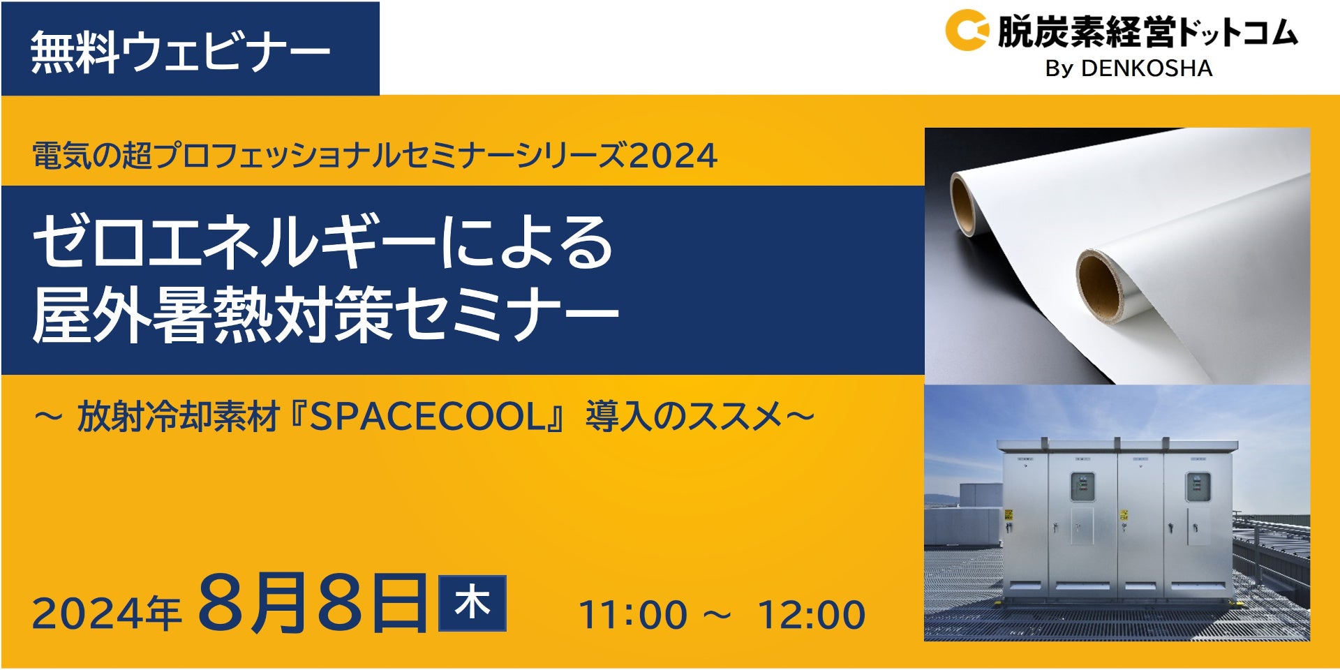 「RE100」の中小企業版「RE Action」に加盟し、脱炭素経営を推進する電巧社(本社:東京都港区、代表取締役社長:中嶋 乃武也)では、弊社が運営する「脱炭素経営ドットコム」 にて、「2024年8月度電気の超プロフェッショナルセミナーシリーズ」をリリース。第7回は2024年8月8日(木)「ゼロエネルギーによる屋外暑熱対策」をテーマに~放射冷却素材『SPACECOOL』導入のススメと題したセミナーを開催し、その中で詳しく解説します。