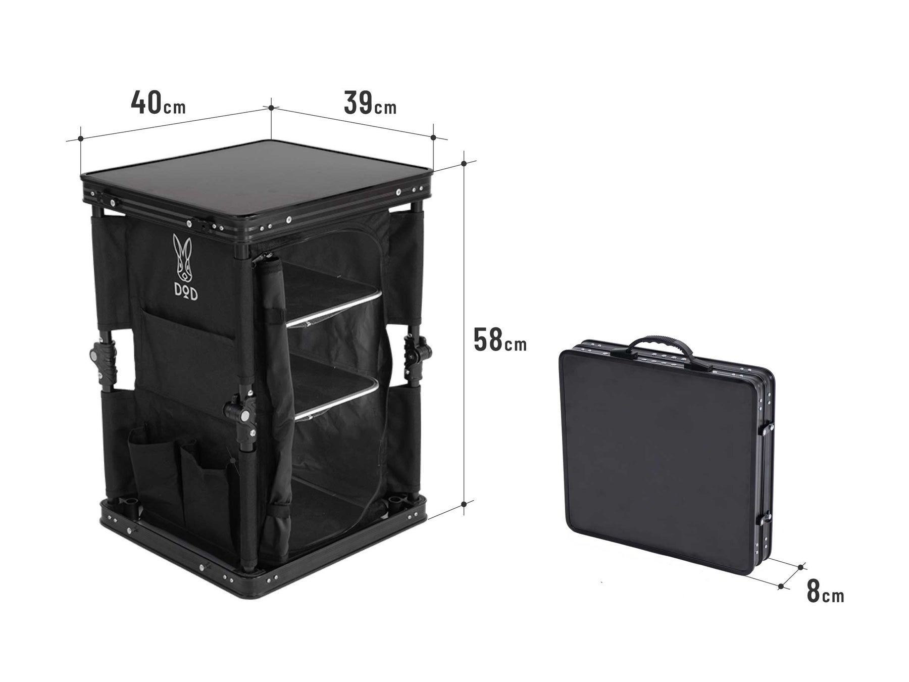 キャンプサイトやキッチンを整理して快適に過ごせます。