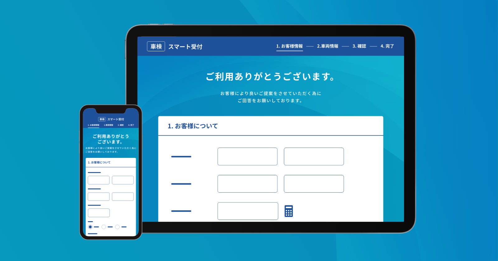 「スマート受付」では氏名やマイカー情報のほか、マイカーの乗り換えや売却検討の有無も聴取が可能。テスト導入した複数の事業所においては、乗り換え検討する回答データを活用して車販売上が実現。従来カーメンテナンスのみに頼る事業所が受付アンケートのデジタル化により収益源が広がる事例も生まれています。