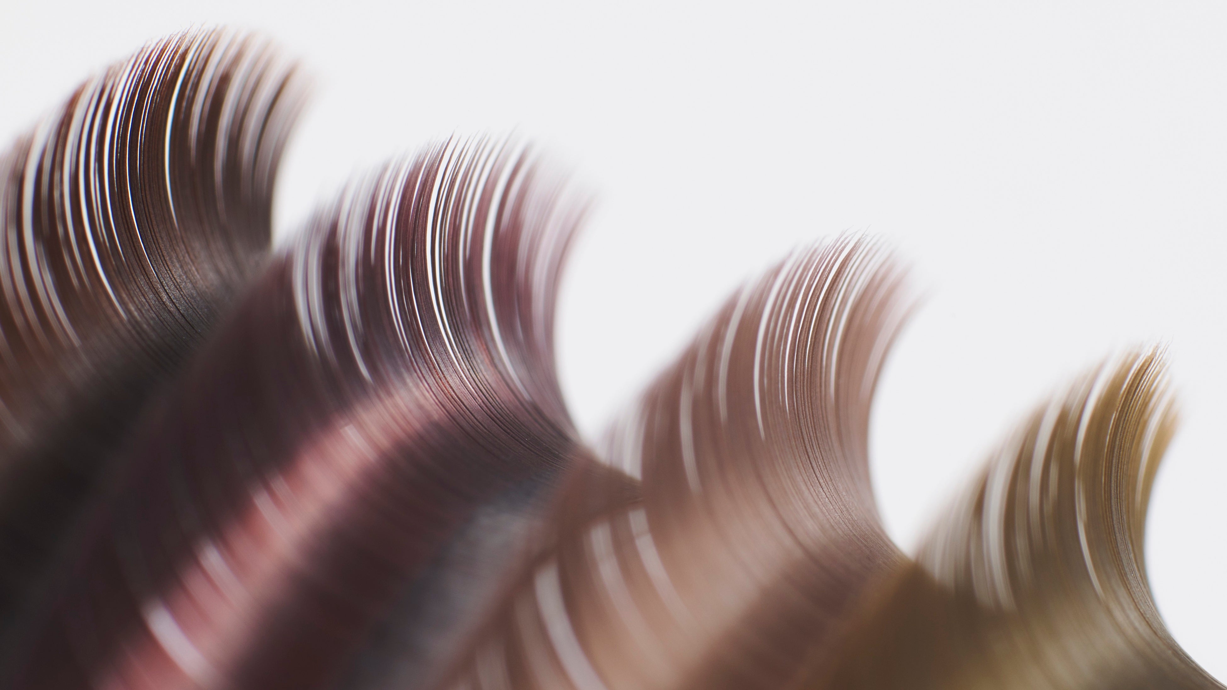 くぼみのある楕円形状でまつげにフィットしやすく、少量のグルーでも高い密着力を実現しました。ツヤを抑え、自まつ毛に近いのでしっかりなじみます。スリットを深くいれた軽い付け心地は、極限まで目元への負担を軽減し、自然な仕上がりとボリュームを演出します。