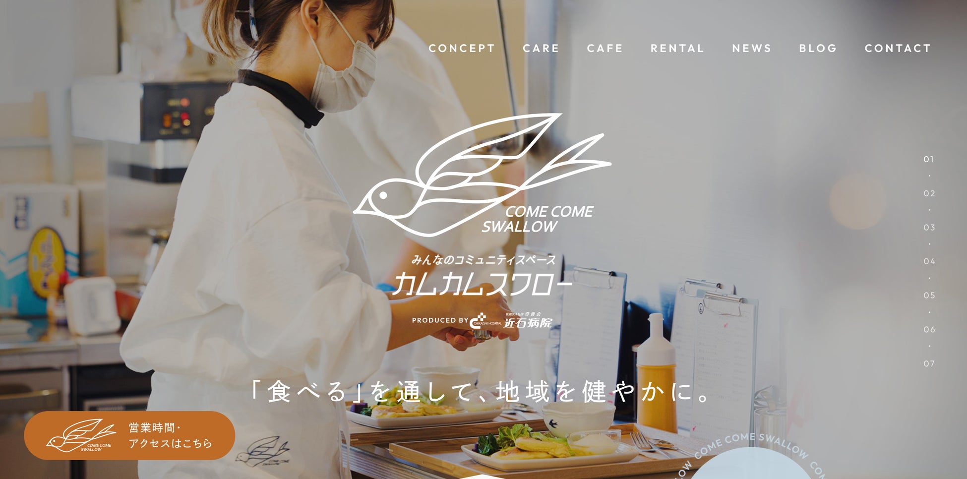 「食べるを通じて、医療と地域をつなぐ場」をコンセプトに地域医療の拠点となる近石病院がプロデュースした認定栄養ケア・ステーション。カフェ・シェアキッチン・イベントホールなどがあり、地域の方の健康をサポートし交流できる場である。管理栄養士が常駐しており、飲み込みが悪い方でも摂取可能な嚥下調整食を提供できる点が特徴。