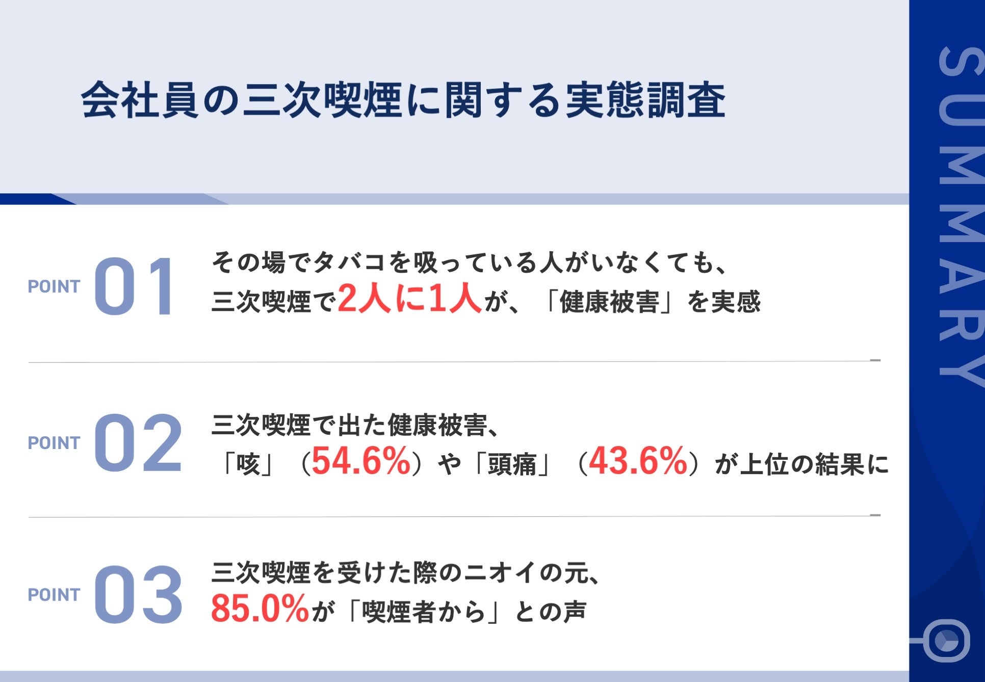 【意外と知らない、三次喫煙のリスク】タバコの「三次喫煙」経験者に聞いた!誰もタバコを吸っていないのに、2人に1人が「健康被害」を実感、症状は「頭痛」「咳」など