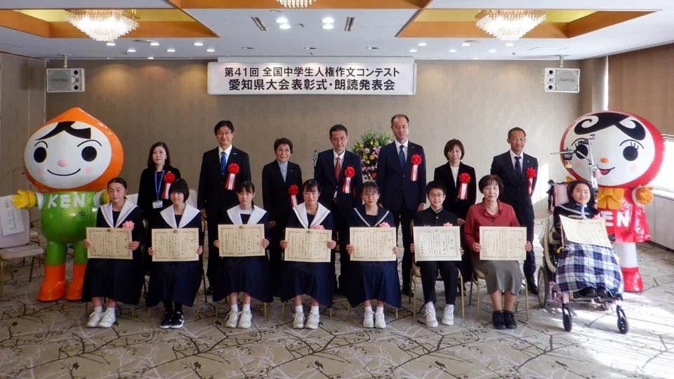 12月10日(土)、名古屋法務局及び愛知県人権擁護委員連合会主催「第41回全国中学生人権作文コンテスト愛知県大会表彰式」が開催されました。