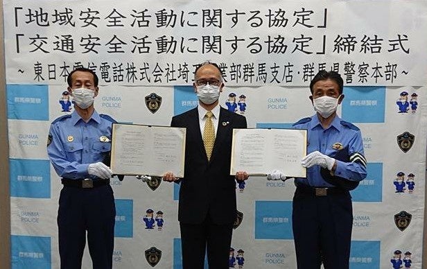 群馬県警察本部(本部長:千代延 晃平)と東日本電信電話株式会社 群馬支店(支店長:橋本 寿太郎、以下「NTT東日本 群馬支店」)は、特殊詐欺をはじめとする各種犯罪防止等の地域安全活動、交通事故防止に向けた交通安全活動など県民生活の安全を確保するための取組について相互に連携した活動を推進することを目的として『地域安全活動に関する協定』および『交通安全活動に関する協定』を締結しました。