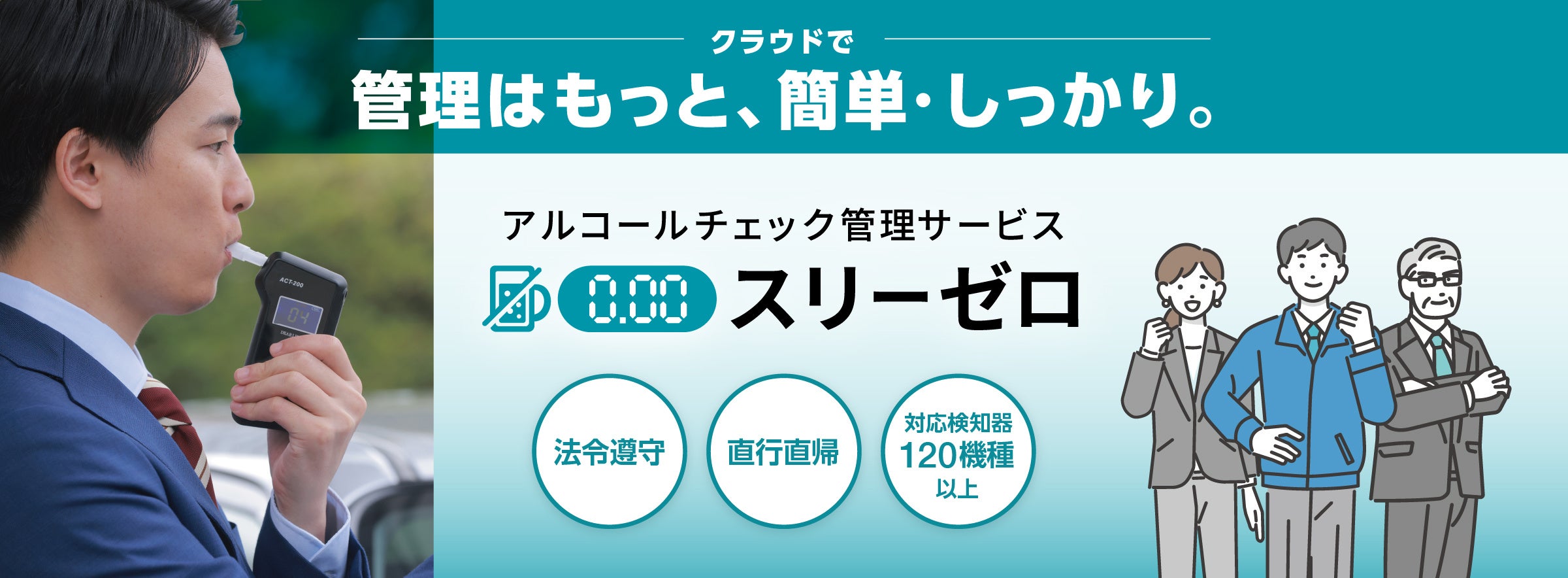 当社では、アルコールチェック管理サービス『スリーゼロ』を提供しており、飲酒運転撲滅を目指しアルコールチェック義務化対応に関する安全運転管理者・現場の管理者・運転者の負担軽減、業務効率化を支援するサービスを展開しています。『スリーゼロ』を導入いただくことで、日々のアルコールチェックの実施・記録・保存や、確認業務が負担なく行えます。また、法令遵守の観点でも負担軽減の一助になれるよう、調査結果を踏まえたサービスの展開やさらなる向上に取り組んでいく予定です。