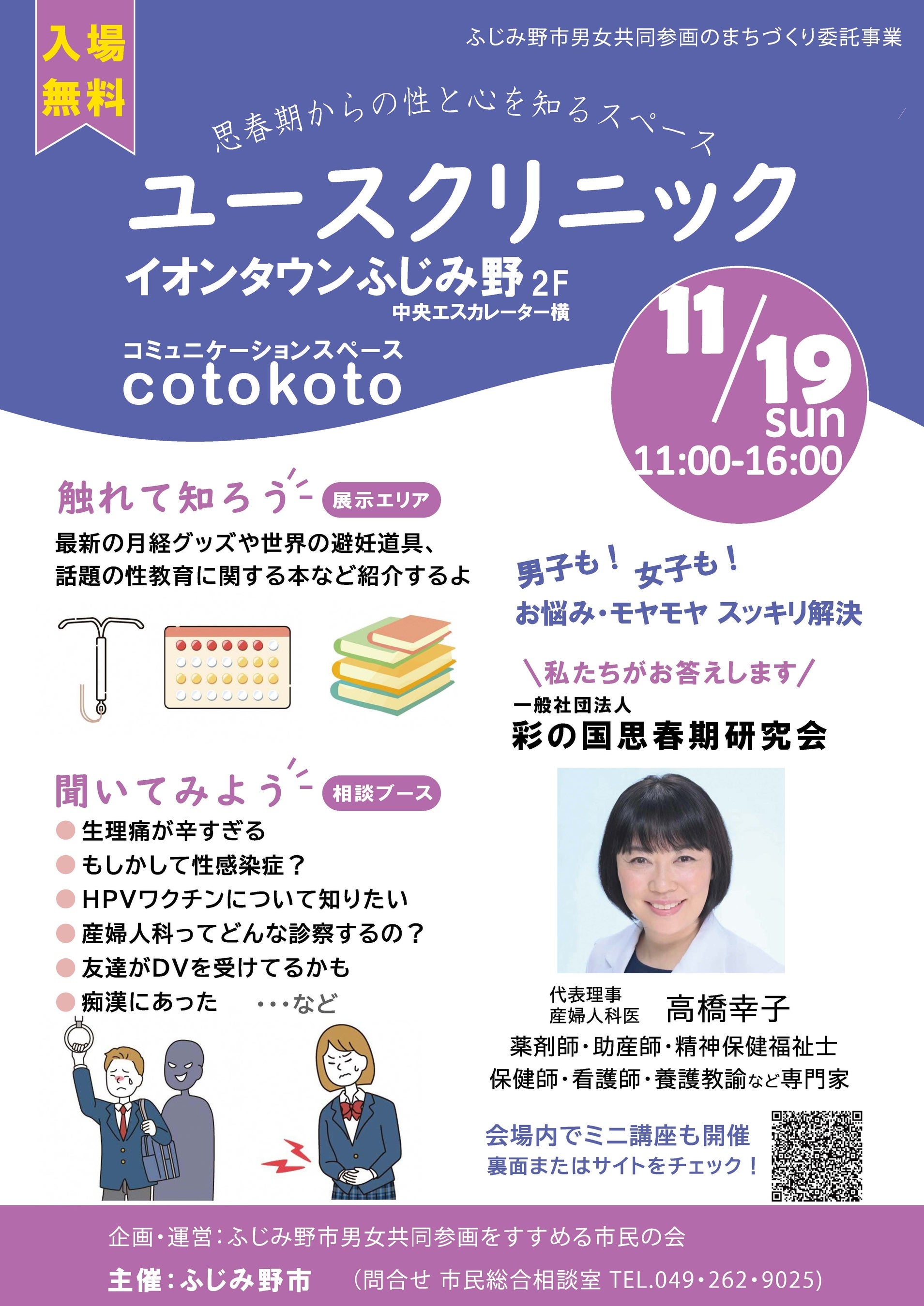 ふじみ野市男女共同参画のまちづくり委託事業として「ユースクリニック」を開催します。