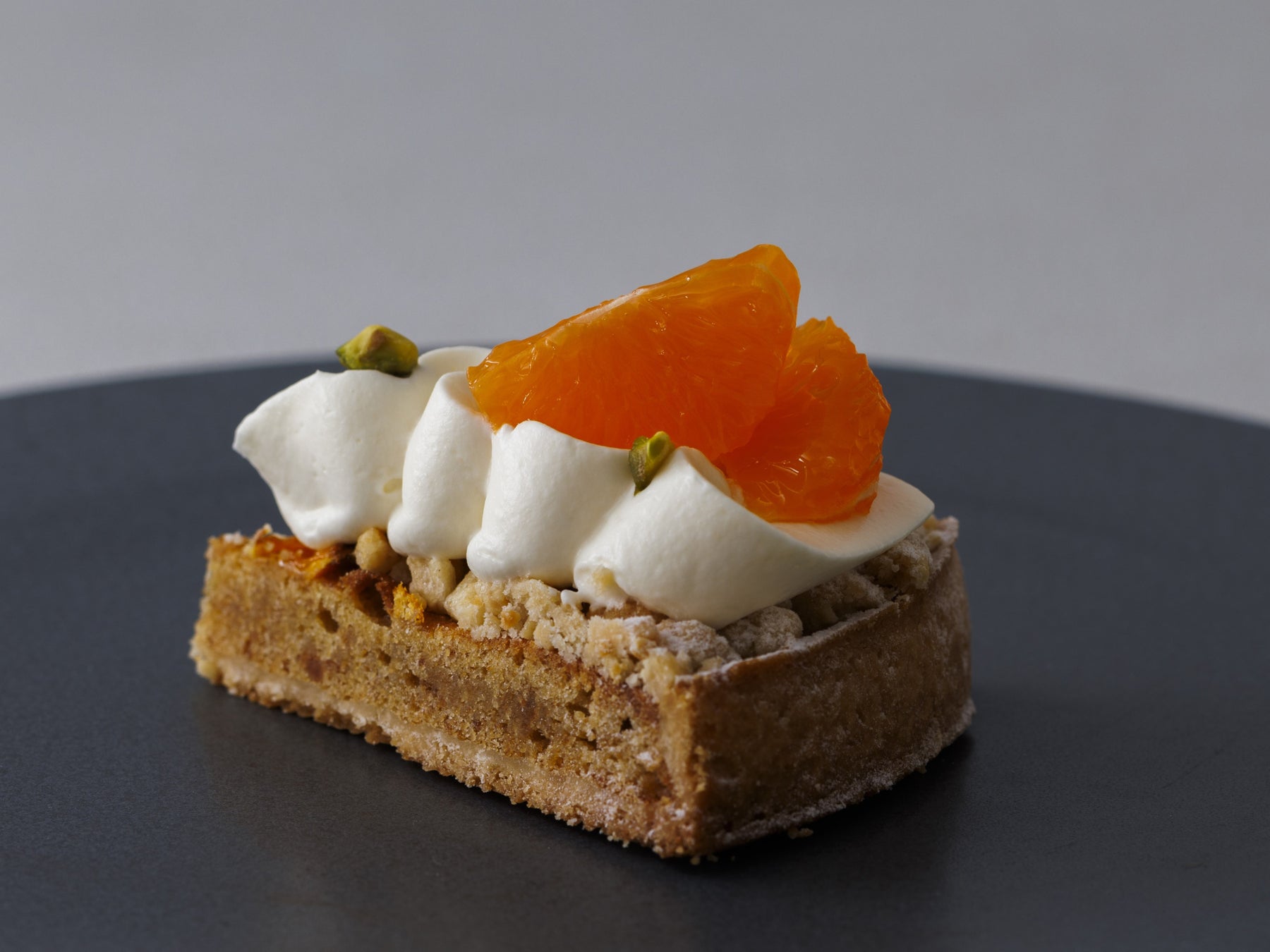 みかんを皮ごと使用することでみかんの風味がより感じられ、クリーミーでコクのあるチーズクリームと絶妙にマッチしたプティガトー。
