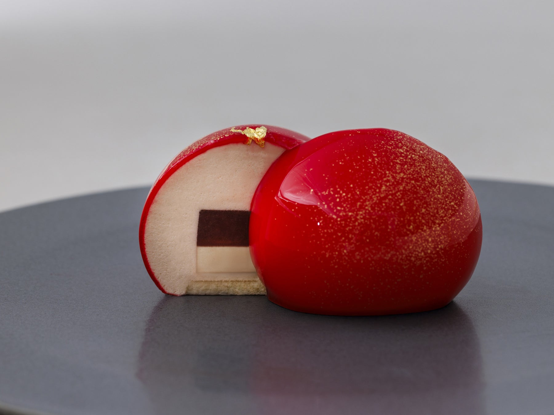 ほど良い酸味と甘味が調和したザクロとグレープフルーツのムースの中に香り高いアールグレイムースとザクロと苺のジュレを忍ばせました。
