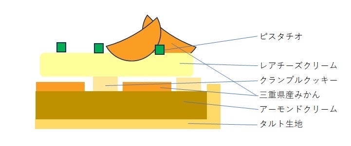 タルト生地に三重県産みかんを皮ごと使用し焼き上げ、口当たりの軽いチーズクリームをたっぷり絞りフレッシュみかんで飾りつけました。