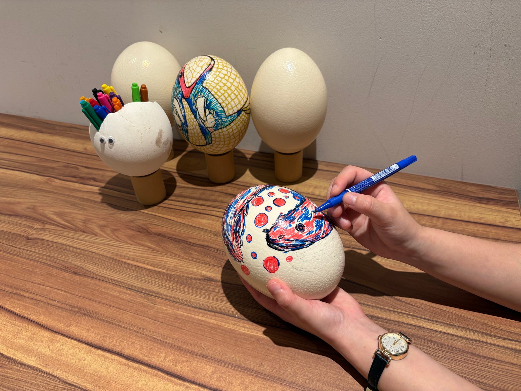 ① ダチョウの丸ごと卵を使った絵付け体験(要予約)