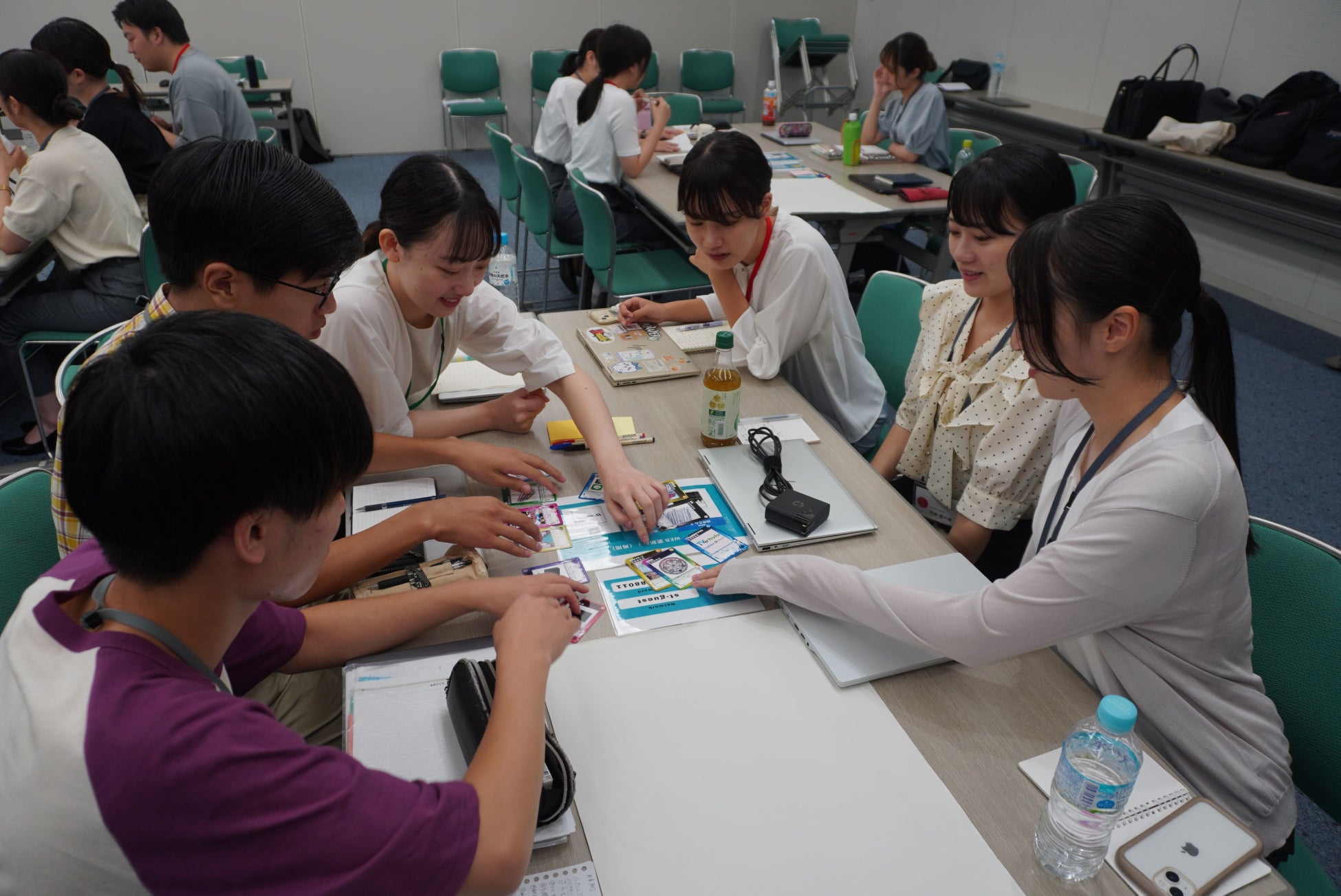 学生が「広告業界」がどのような広告媒体を使い企業の課題解決をおこなっているかをイメージしやすいように、新卒社員らが「自らデザイン・制作した」カードを用いて各グループに分かれブレインストーミング形式で企画アイデアを考え発表しました。