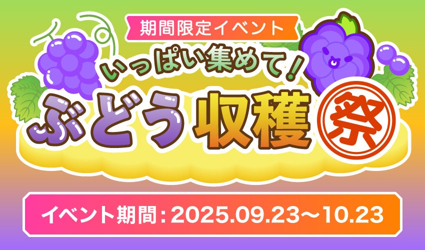 当イベントは、期間内にゲーム内で収穫した”ぶどう”の数を競う特別ルールとなっており、上位の方には賞品として、“高級ぶどう”をご用意。運動習慣の定着とゲームを通じたコミュニティ盛り上げを目指します。