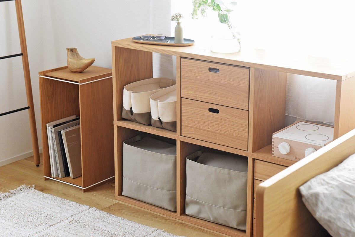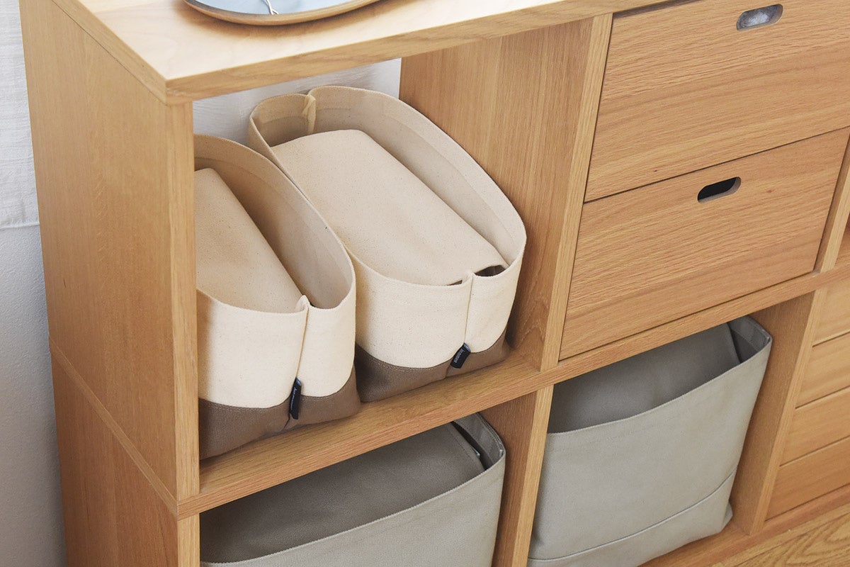 出し入れ自在ながら、しっかり隠せる帆布素材の収納シリーズ。よく使うものを見せ置きできるので、きれいに整った理想のお部屋づくりに一役買ってくれます。