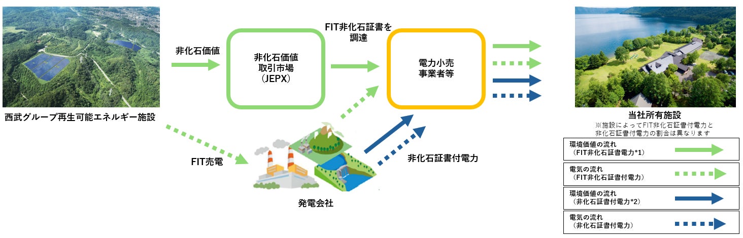 *2 非化石証書付電力とは・・・非化石エネルギー源(再生可能エネルギーや原子力など)から生み出された電力の「環境価値」を分離し、取引可能な形にした証明書です。この制度により、環境価値を購入することで、実際には化石燃料を使った電力を消費していても、非化石エネルギーを使用したとみなすことができます。