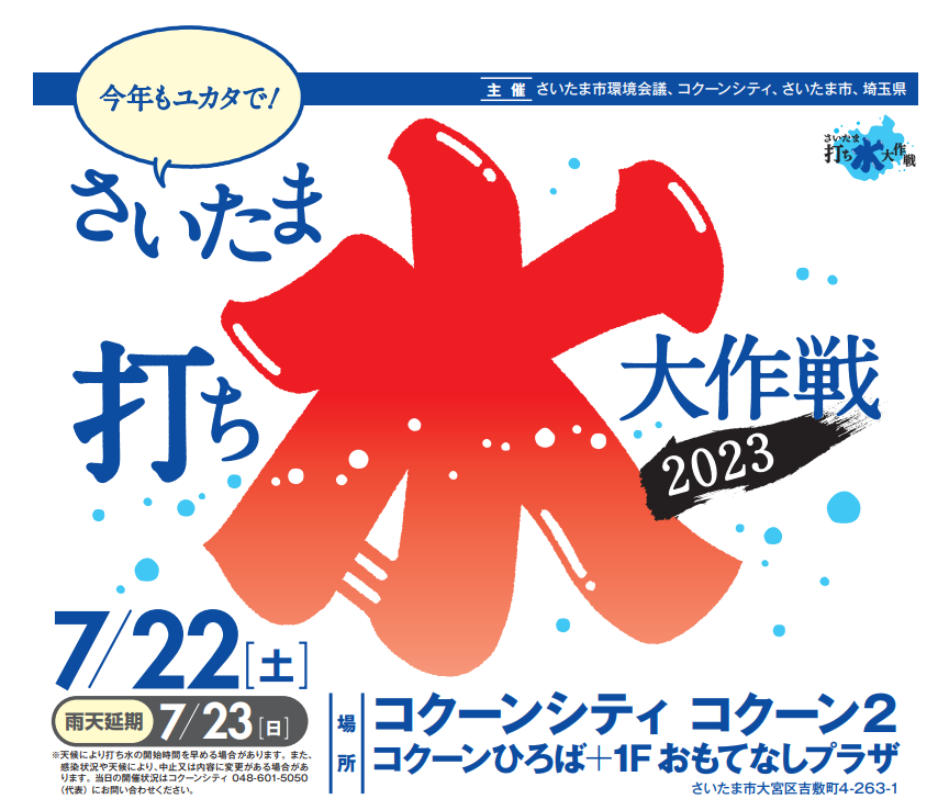 埼玉県は、さいたま市、コクーンシティ(片倉工業株式会社)及び市民活動団体「さいたま市環境会議」とともに、「さいたま打ち水大作戦2023」を開催します。