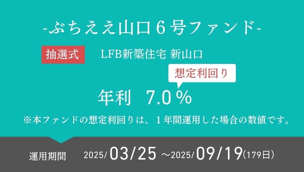 不動産小口化商品「ぶちええ山口6号ファンド LFB新築住宅 新山口」を想定利回り7%・抽選式で2月28日より募集開始