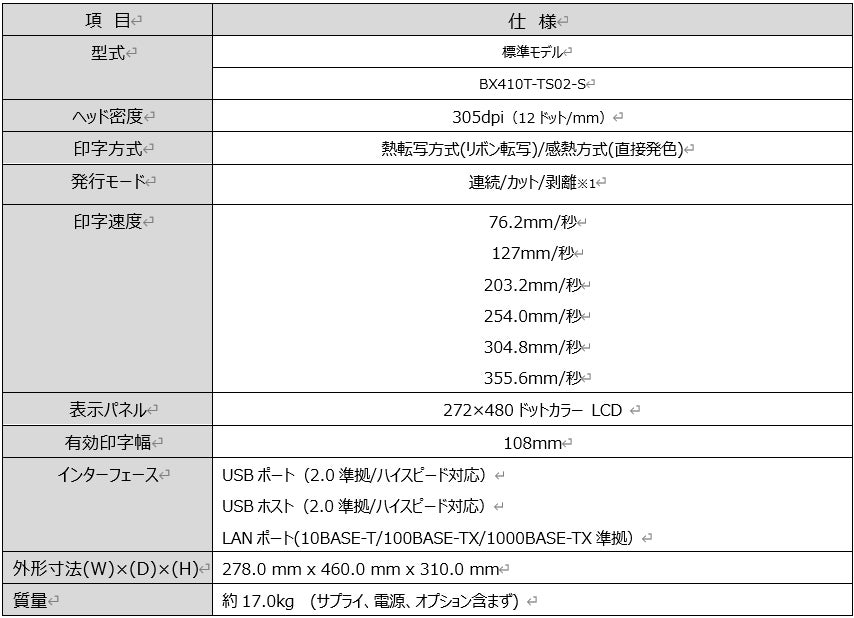 <「BX410T-TS02-S」の主な仕様>