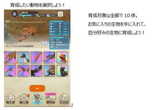 一度育成が終了した動物も再び育成することができ、前の育成結果に応じて基本能力が上がり、繰り返し育成することで更に能力を上げることが可能です。
