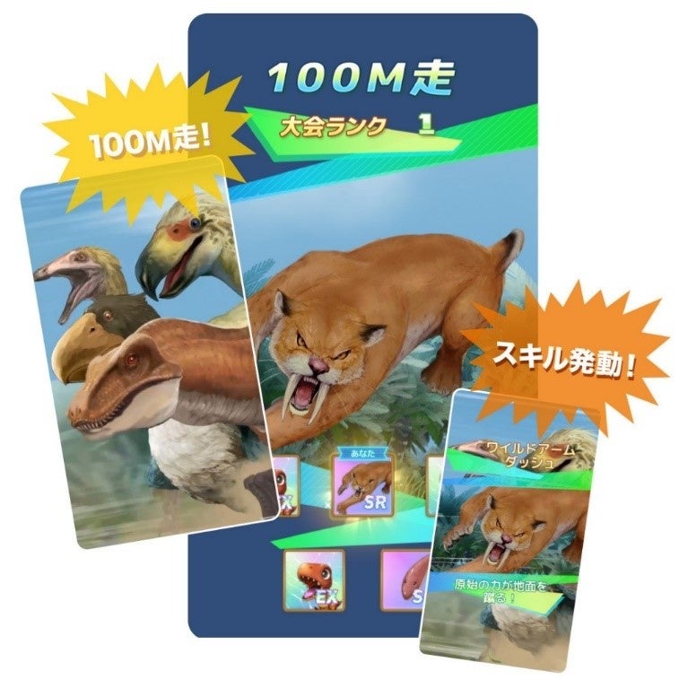 既存の化石発掘ミニゲーム「発掘チャレンジ」と特定のエリアで発掘できる「フィールド発掘」に加え、復元させた生物を育成し大会に出場させて他の生物と競争させることができるようになりました。