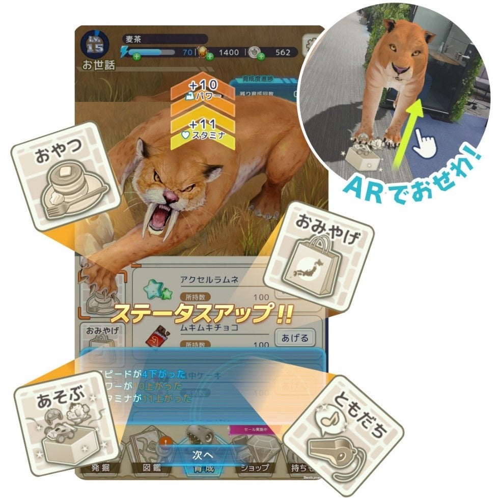 またランダムに登場するARボーナスではAR画面上で動物のお世話をすることで成長率を大幅にUPさせることができます。