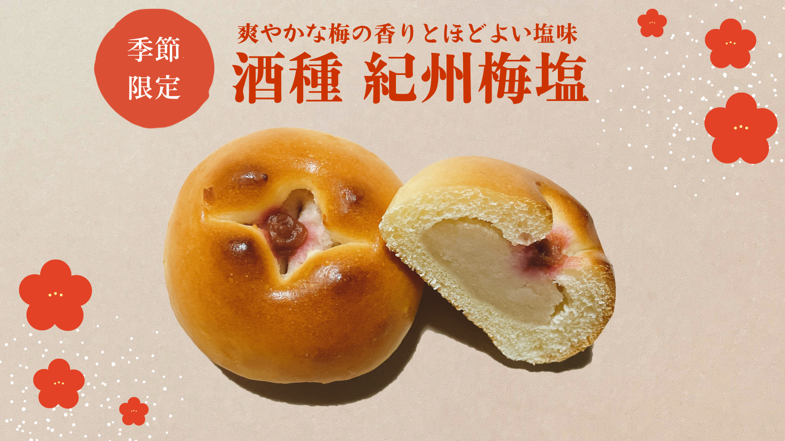 トッピングには紀州梅の梅ジャムをひとしぼり、見た目も華やかなあんぱんです。