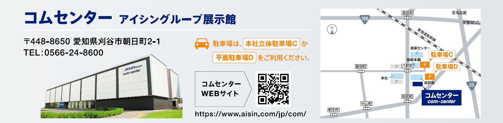 【住所】愛知県刈谷市朝日町2丁目1番地 アイシン企業展示館「コムセンター」