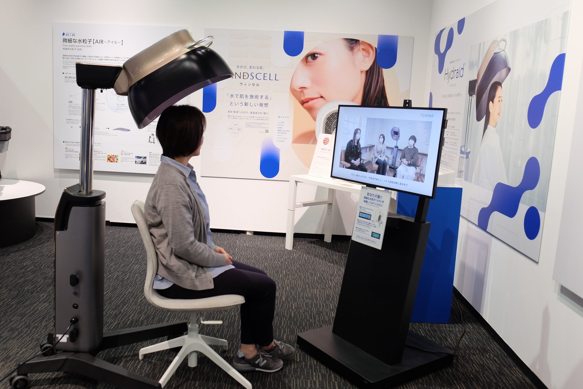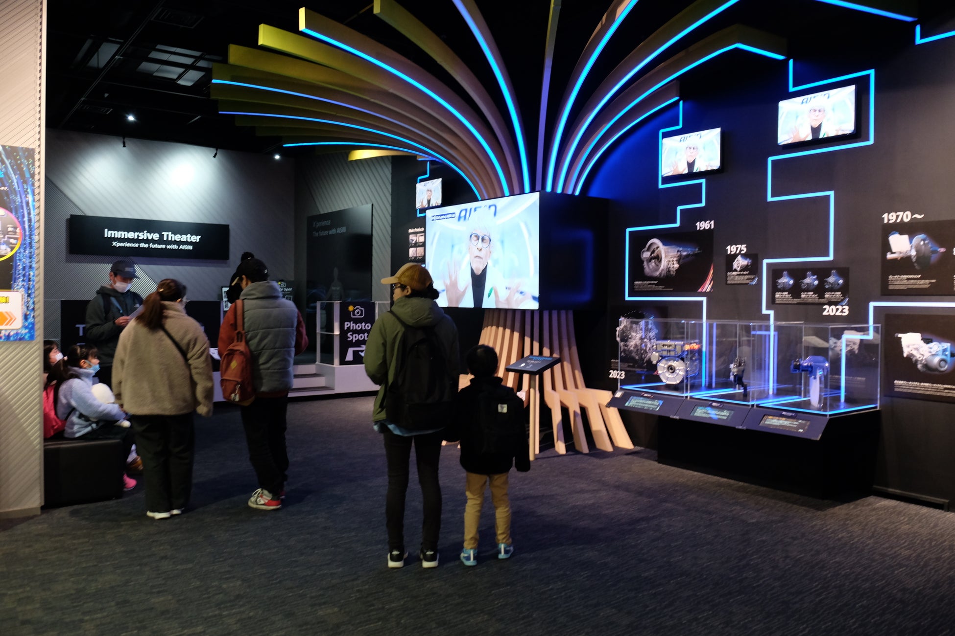 「コムセンター」では、ジャパンモビリティショー2023で大好評だったイマーシブシアターや、製品や取り組みを分かりやすく紹介するムービーショーなど、体験型の展示でアイシンの過去から現在、未来を楽しく知っていただけます。また、音声をリアルタイムで文字化する「YYProbe(ワイワイプローブ)」や微細な水粒子(AIR)で髪に潤いを与える「Hydraid(ハイドレイド)」も実際に体験いただけます。