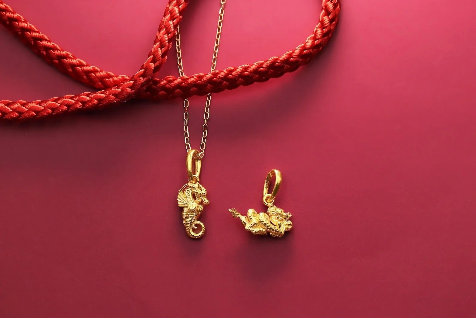 龍とタツノオトシゴのペンダントもご用意しました。とっても可愛い純金のドラゴンペンダント。約1gの小さな純金の見事な細工をジュエリーとしてもお楽しみ頂けます。