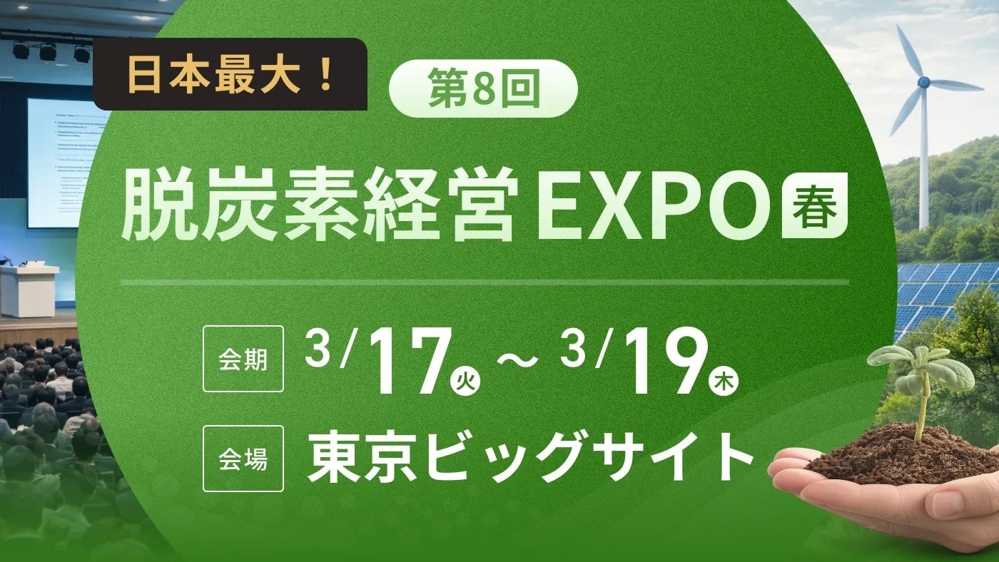 株式会社フェイガー(本社:東京都千代田区、代表取締役:石崎貴紘)は、2026年3月17日(火)から19日(木)に東京ビッグサイトで開催される「第8回 脱炭素経営EXPO春」に出展いたします。