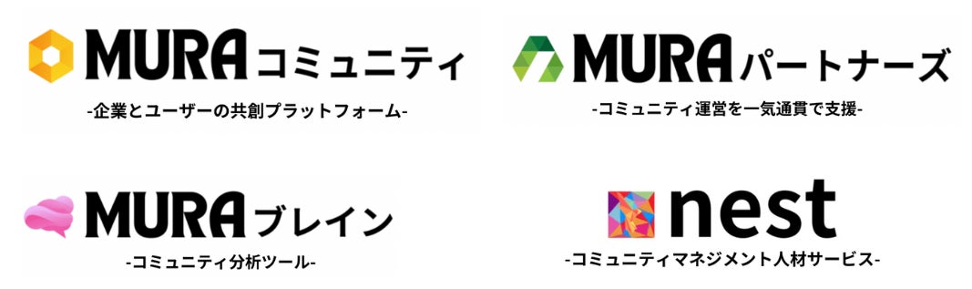 コミュニティプラットフォーム「MURAコミュニティ」、コミュニティ運営支援の「MURAパトナーズ」、分析ツール「MURAブレイン」、コミュニティマネジメント人材サービス「nest」を通じて、企業やブランドのコミュニティ運営をデータを活用し支援します。