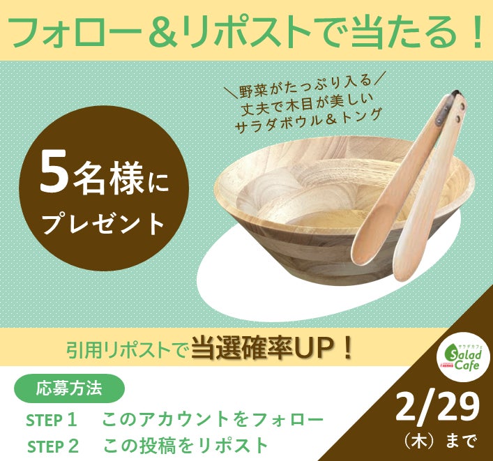 Xのフォロー&リポストでサラダボウル&トングを5名様にプレゼント