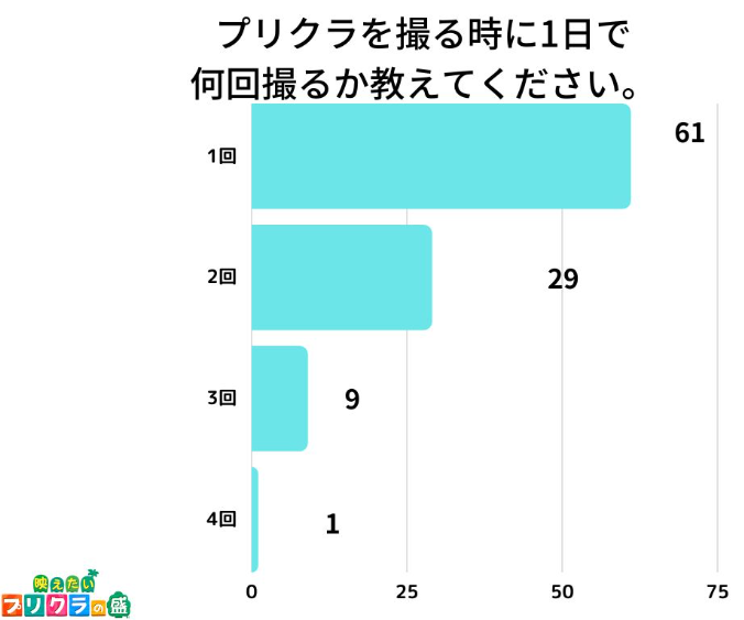 「プリクラを撮る時に1日で何回撮るか教えてください。」とアンケート調査した結果、1位は『1回』でした。