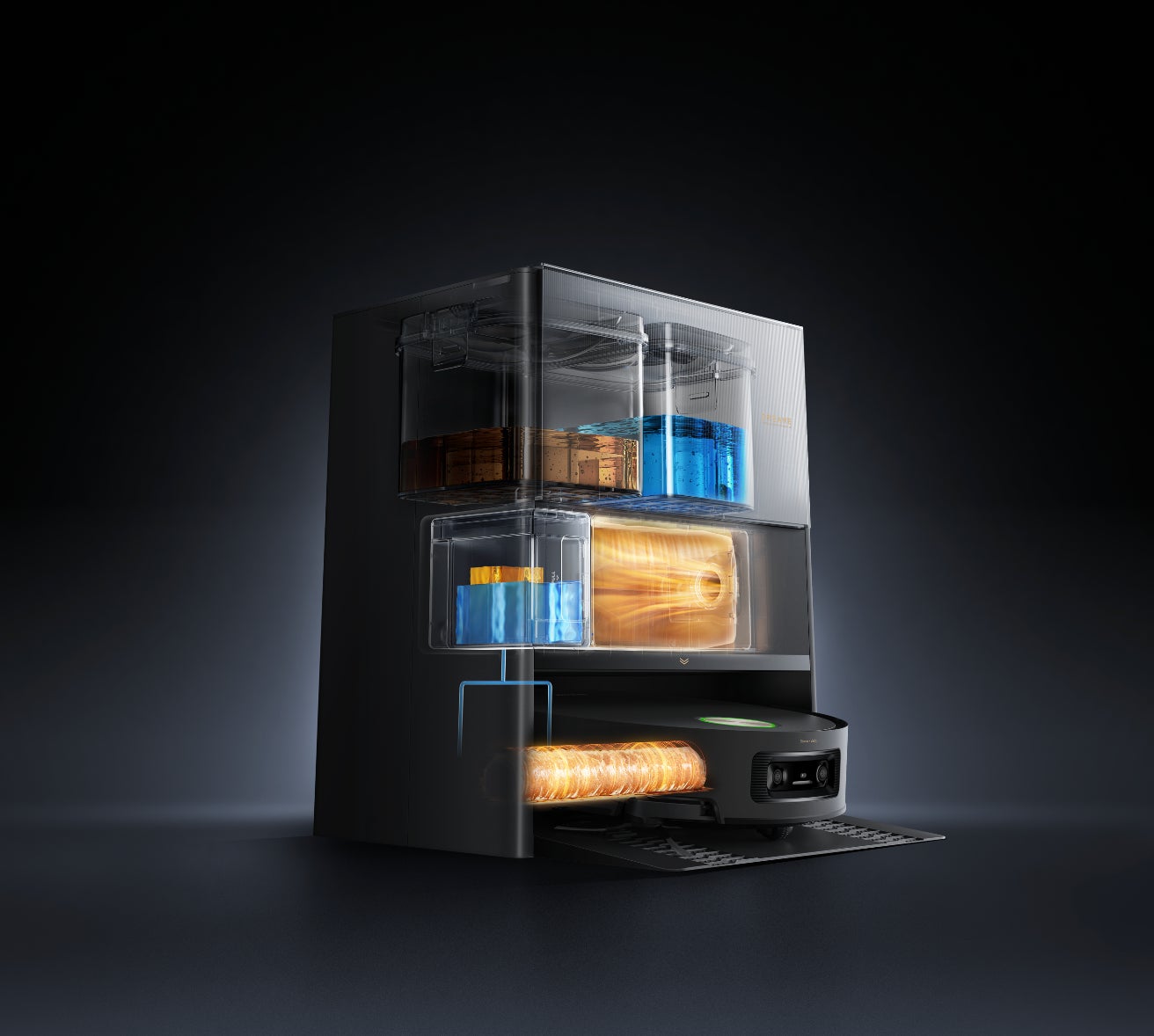 3.2Lの大容量ダストバッグを搭載し、掃除機本体のダストボックスがいっぱいになると自動的にゴミを回収します。セットしておけば、最大100日間※10ゴミ捨てが不要です。また、ドックの加熱システムにより、ダストバッグは最大50℃※11の完全に乾燥した状態に保たれ、湿ったゴミの臭いや虫の繁殖を防ぎます。さらに、70℃※12の熱風と60℃※13の加熱バーを組み合わせることで、掃除機本体のモップの衛生状態を保ちながら湿気の蓄積を防ぎます。