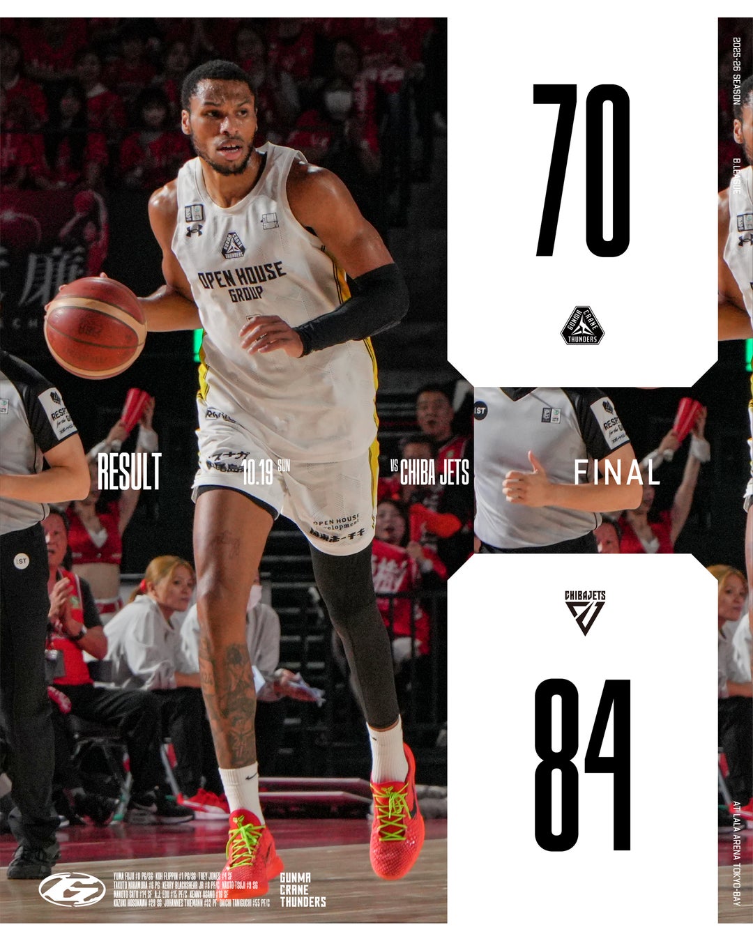 【群馬クレインサンダーズ:試合結果】10/19(日) vs 千葉ジェッツ りそなグループ B.LEAGUE 2025-26シーズン