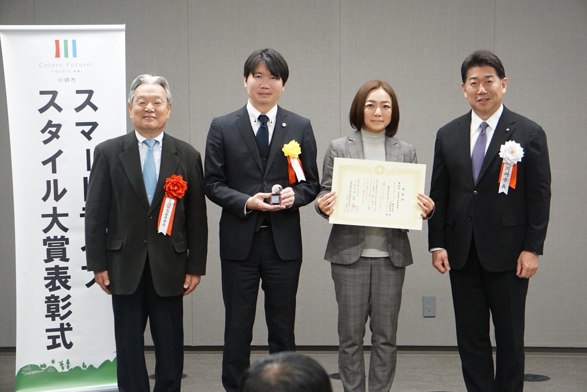 2月7日には授賞式が川崎市役所にて行われ、川崎駅前店の店長が出席して表彰状とトロフィーを受け取りました。この受賞は、キンコーズが掲げるマテリアリティ「地域のパートナーとなり、地域社会の発展を目指す」の具体例となるもので、地域の課題解決に向けた取り組みの一環です。これからも川崎駅前店は地域住民や企業との協力を通じて、地域社会の発展に貢献していきます。