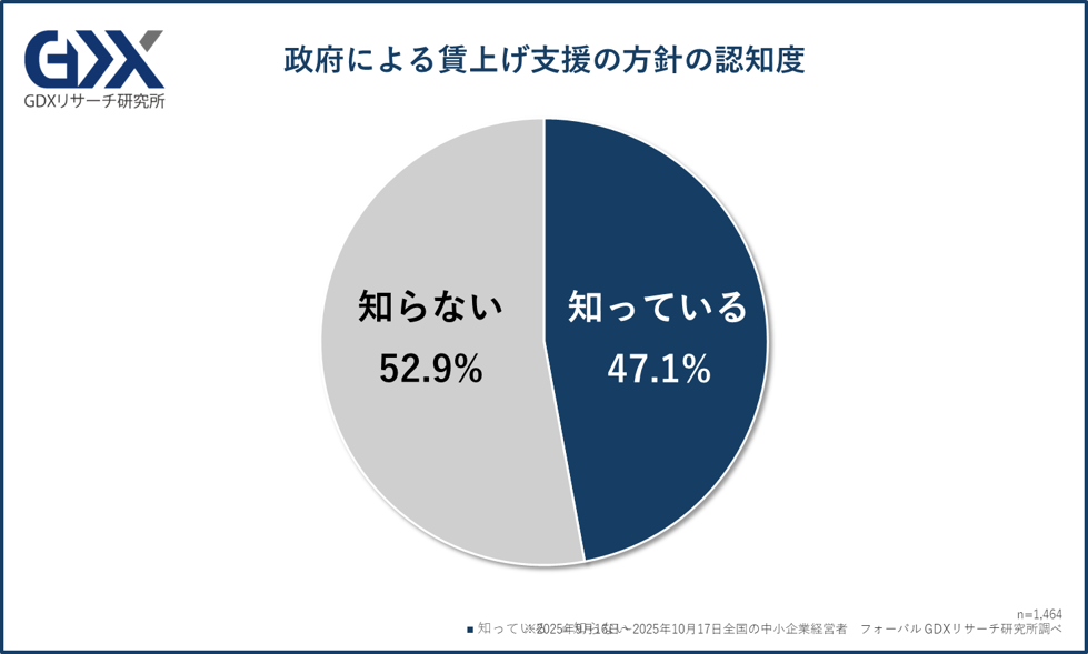 政府による賃上げ支援の方針の認知度は半数を下回るという結果に