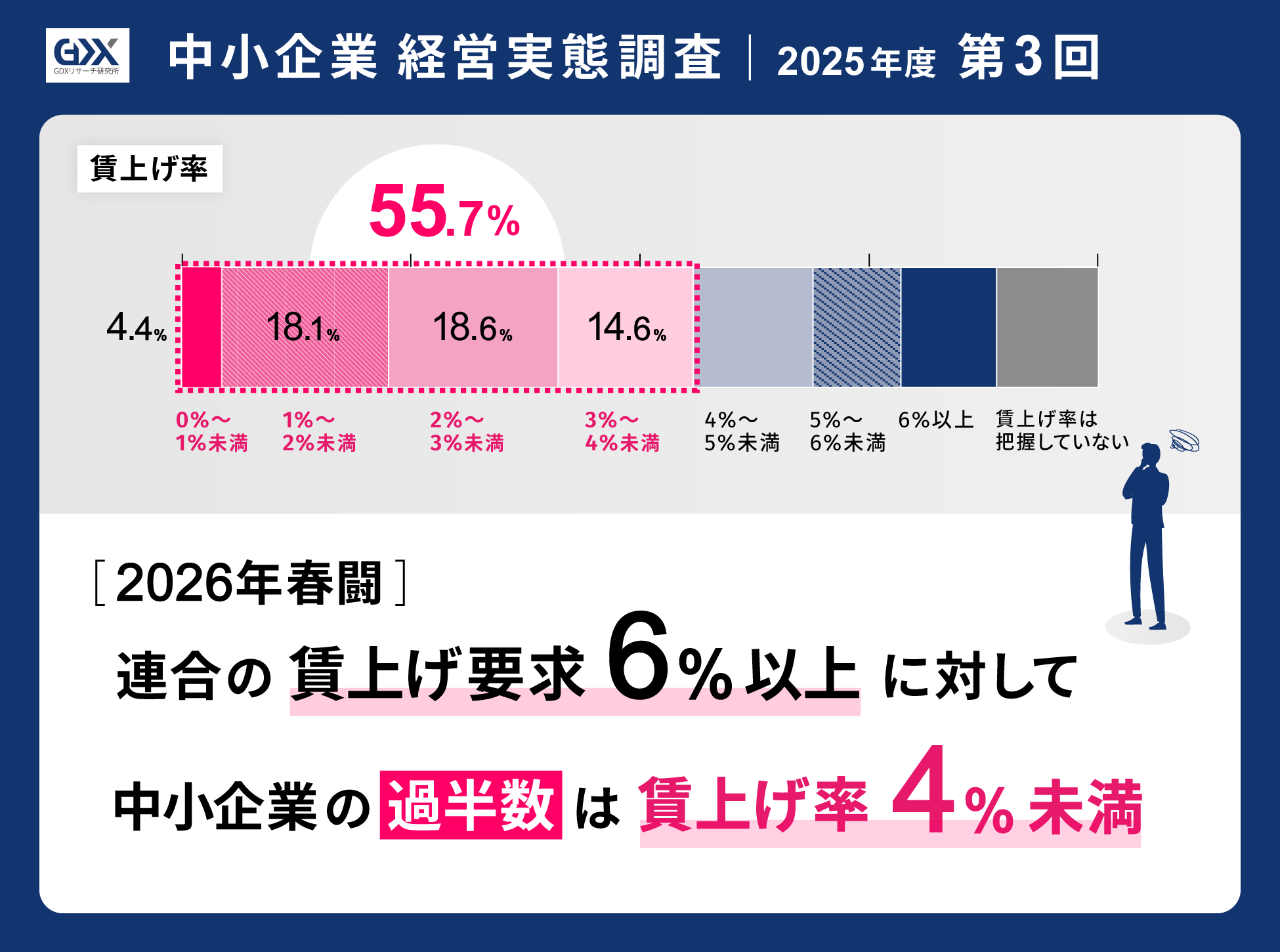 〈2025年度第2回 中小企業経営実態調査〉26年春闘、連合の賃上げ要求6%以上に対して中小企業の過半数が賃上げ率“4%未満”