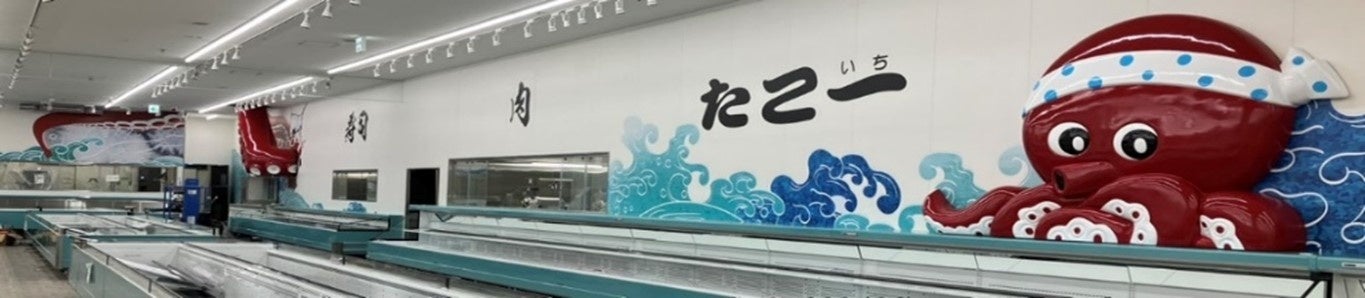 たこ一六甲道店は、約250坪の売場で生鮮食材を中心に販売してまいります。生鮮三品(畜産、青果、鮮魚)の売上構成は80%を想定しており、生鮮市特化型スーパーをコンセプトとして掲げ店内をライブ感で演出していきます。これまで大阪府を中心に展開してきたたこ一は、これまで大阪の地場で培ってきた独自の仕入れと、独自の販売手法を用いつつ、神戸エリアのお客様にご支持いただけるよう探求心をもってさらなる進化を目指して参ります。