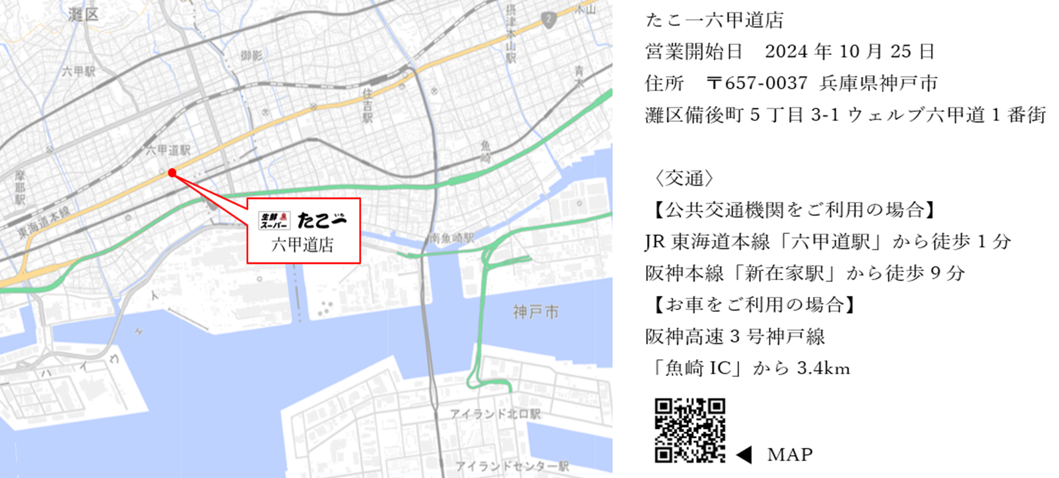 たこ一六甲道店は9店舗目となり、兵庫県では宝塚旭町店に続き2店舗目となります。商圏としては周辺の約9万世帯(人口約20万人)を想定しております。