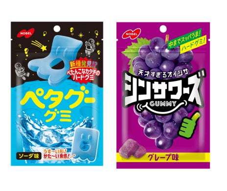 ノーベル製菓の人気グミ2種を無料サンプリング!薄くてかた~い食感がクセになる「ペタグーグミ」と、天才すぎるオイシサの「シンサワーズ」をお楽しみください!ペタグーグッズも販売します。