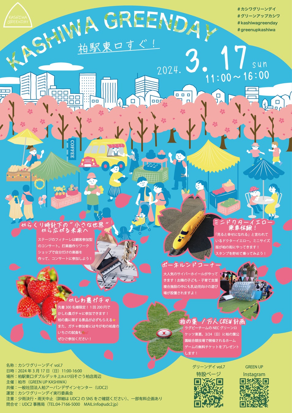 令和6年3月17日(日)に柏駅東口ダブルデッキ上及び、GREEN UP KASHIWA(旧そごう柏店周辺人工芝エリア)にて「KASHIWA GREENDAY vol.7」を過去最大規模で開催します!